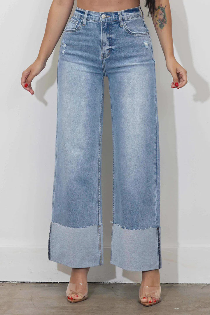 P6185 | VIBRANT WOMENS DISTRESS LIGHT STONE BOOTCUT JEAN