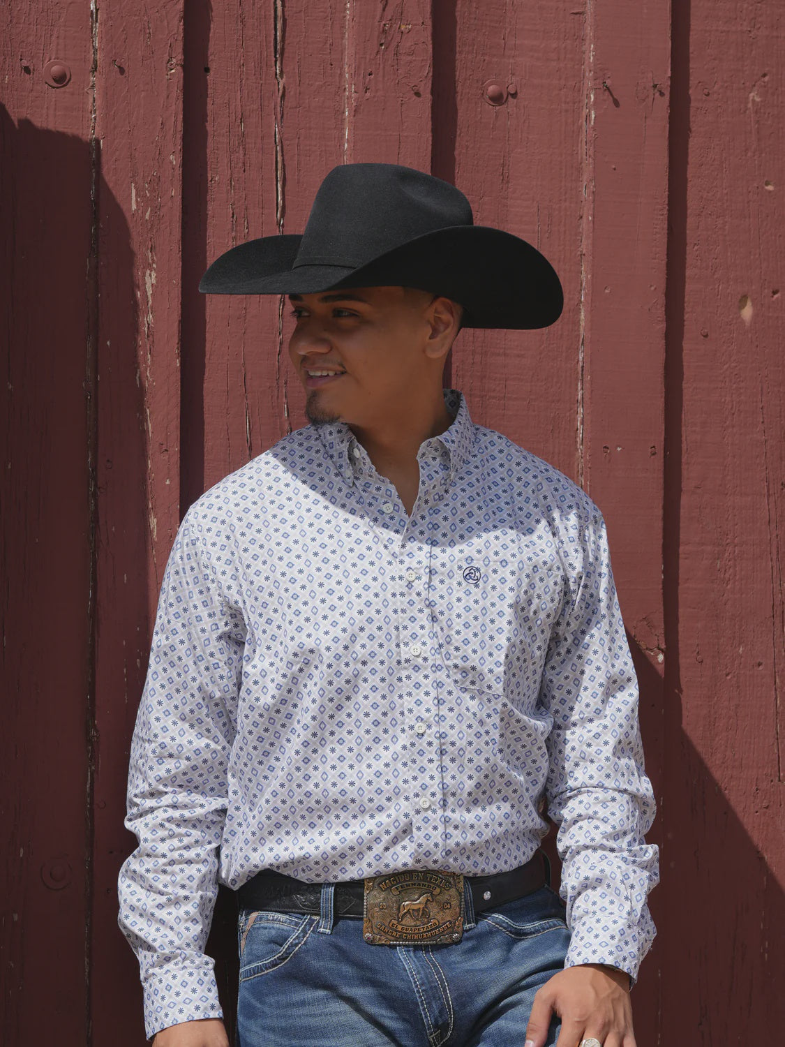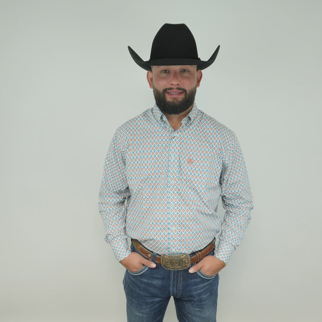 SKCL2023021 | CUEROLINE CLASSIC FIT WHITE/BLUE/ORANGE DIAMOND L/S SHIRT