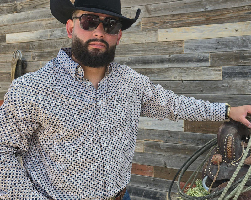 SKCL2023012 | CUEROLINE INDIGO/WHITE/TAN FLOWER LS SHIRT