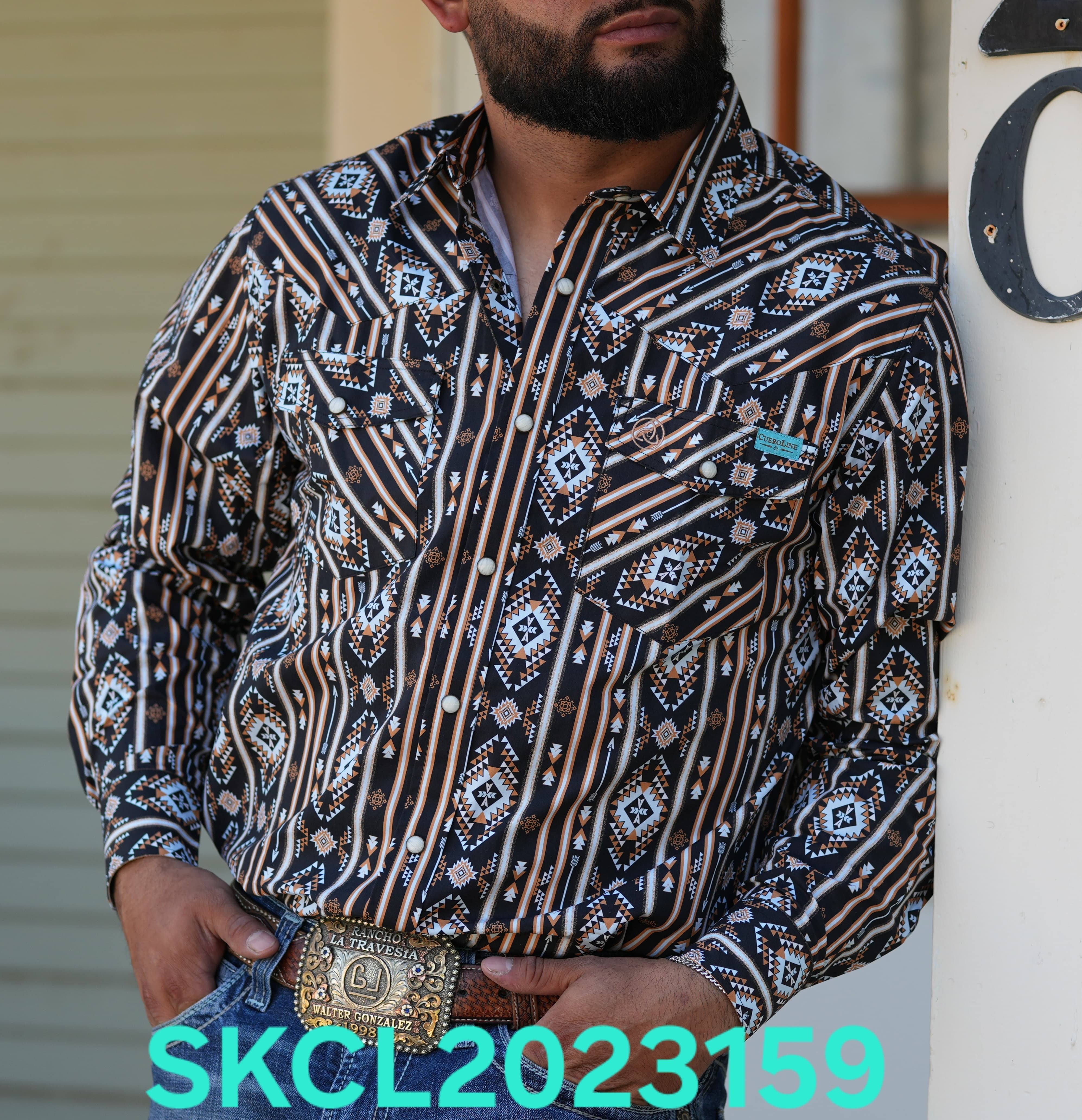 SKCL2023159 CUEROLINE BLACK/BROWN AZTEC L/S SNAP BUTTON UP