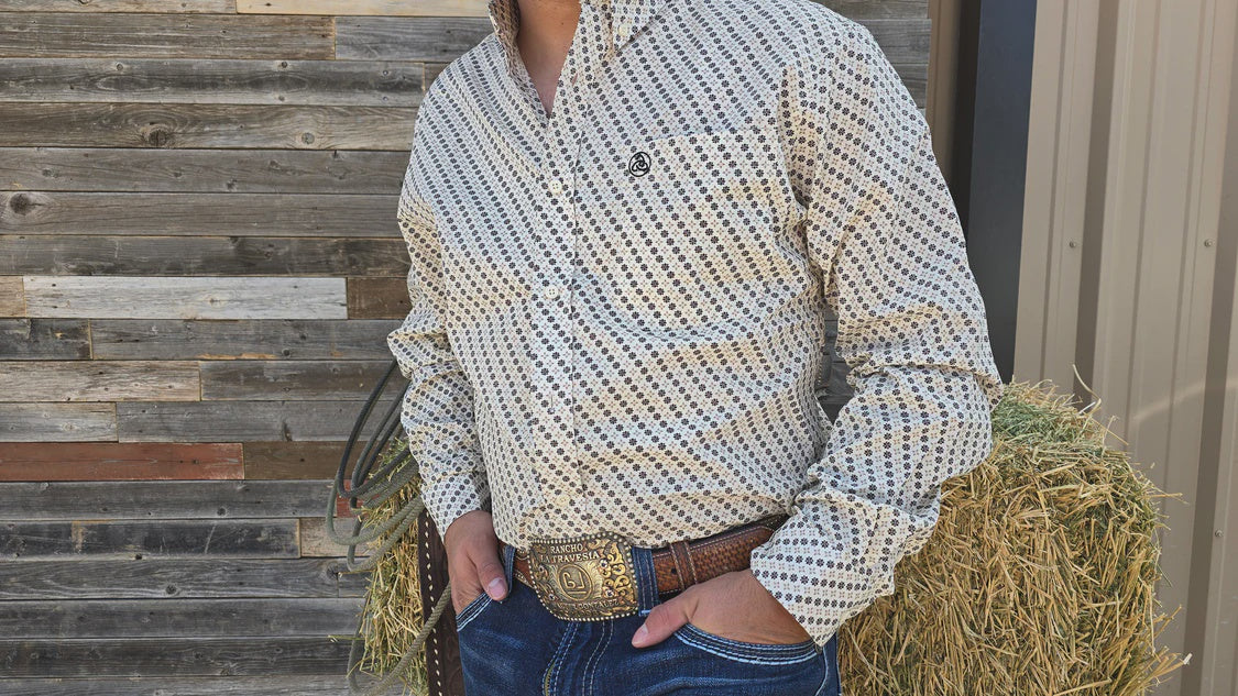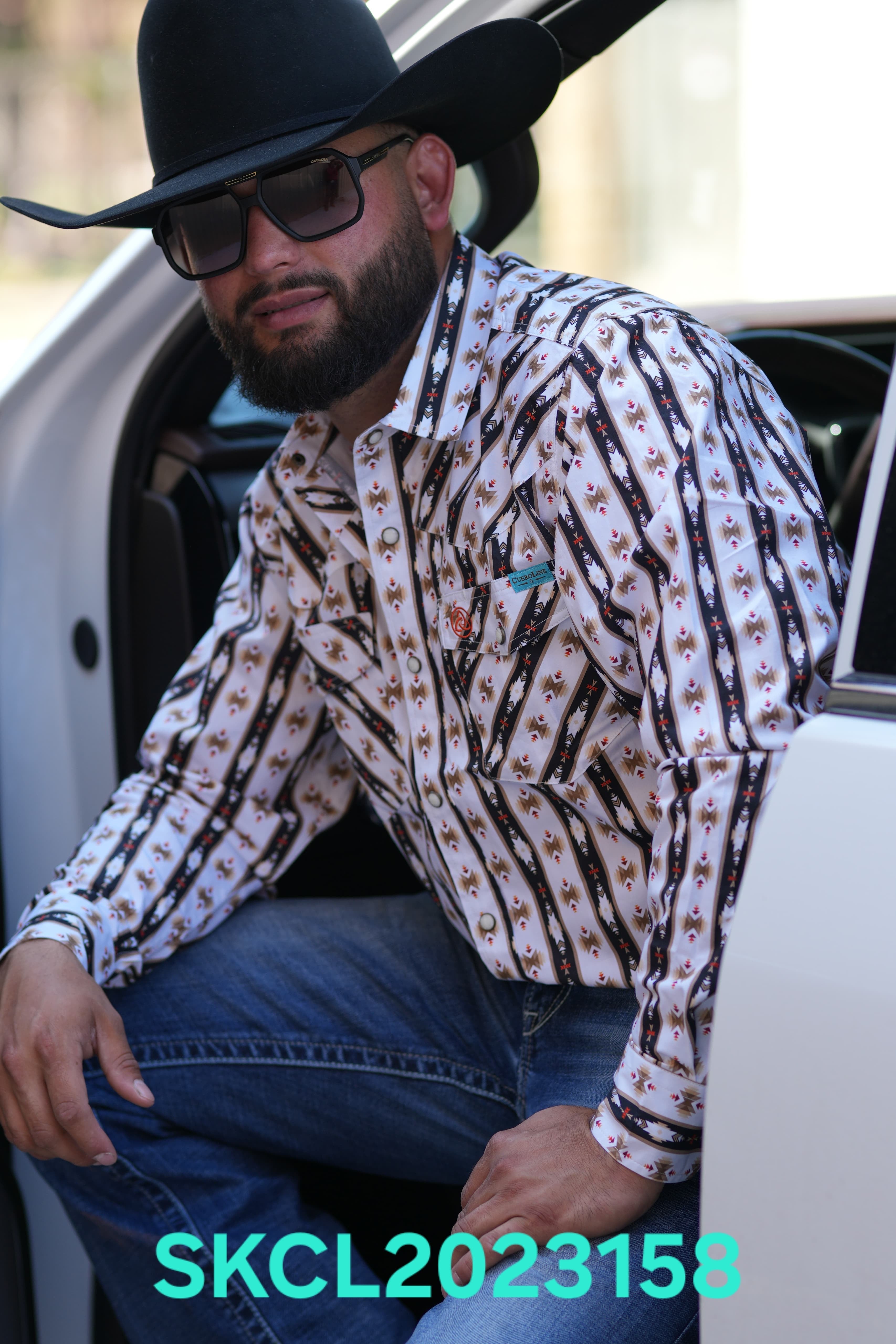 SKCL2023158 CUEROLINE WHITE/BLACK AZTEC L/S SNAP BUTTON UP SHIRT