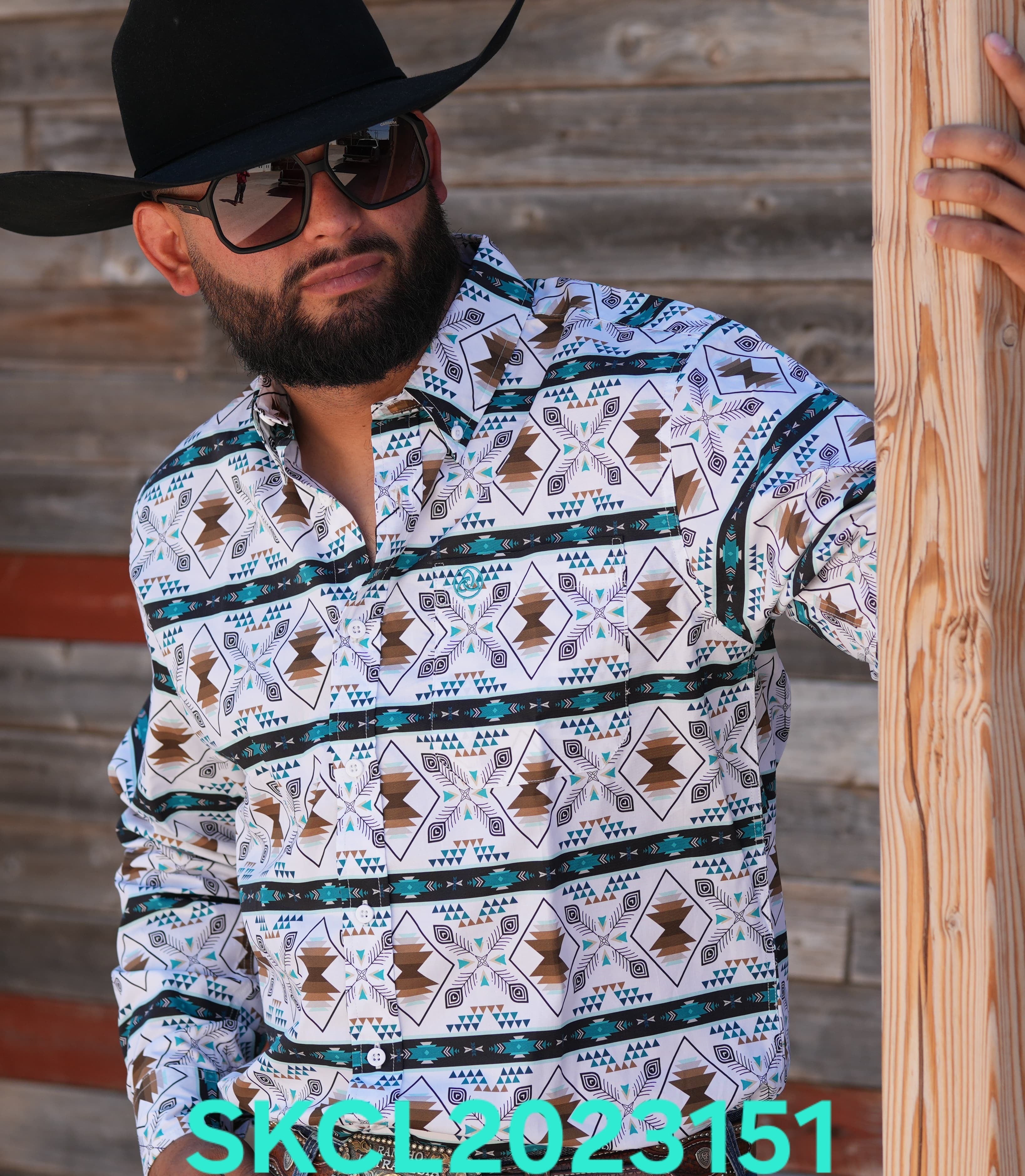 SKCL2023152 CUEROLINE WHITE/BLUE AZTEC L/S SNAP BUTTON UP SHIRT