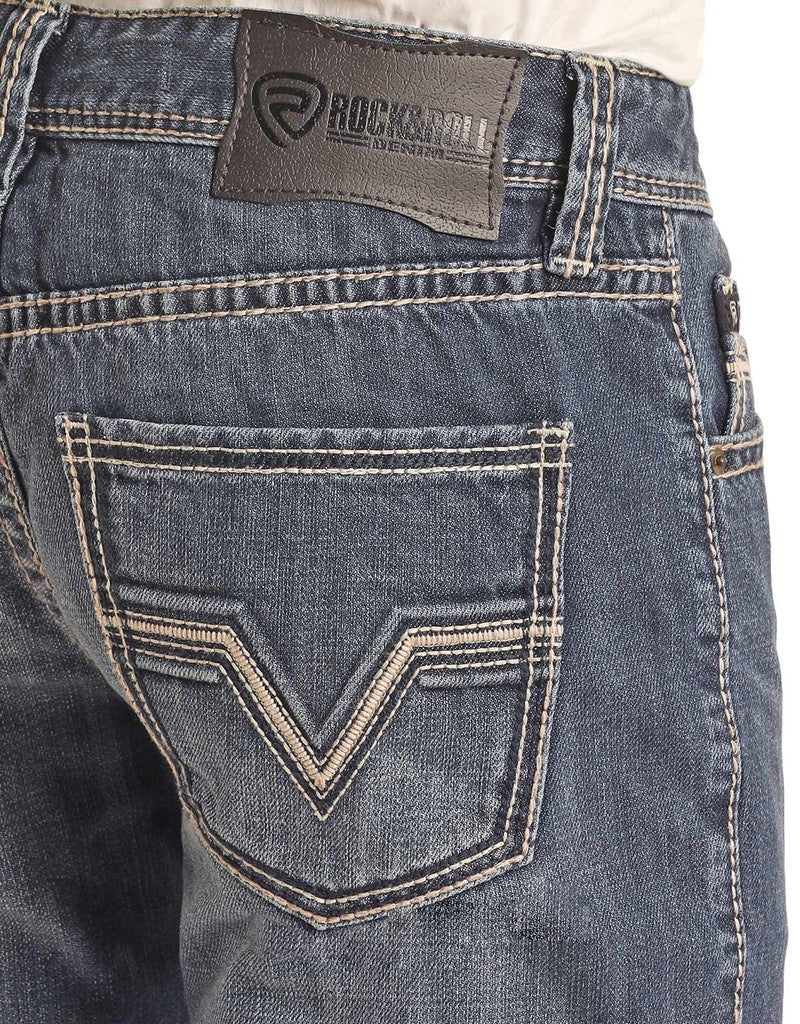 BMHPD06700/ROCK&ROLL MEN’S RAISED PISTOL DARK VINTAGE STACK JEANS