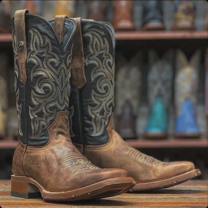 RANCHERS ROUGHOUT GRIS/FLORAL HAND TOOLED TUBE RANCHER TOE HYBRID SOLE