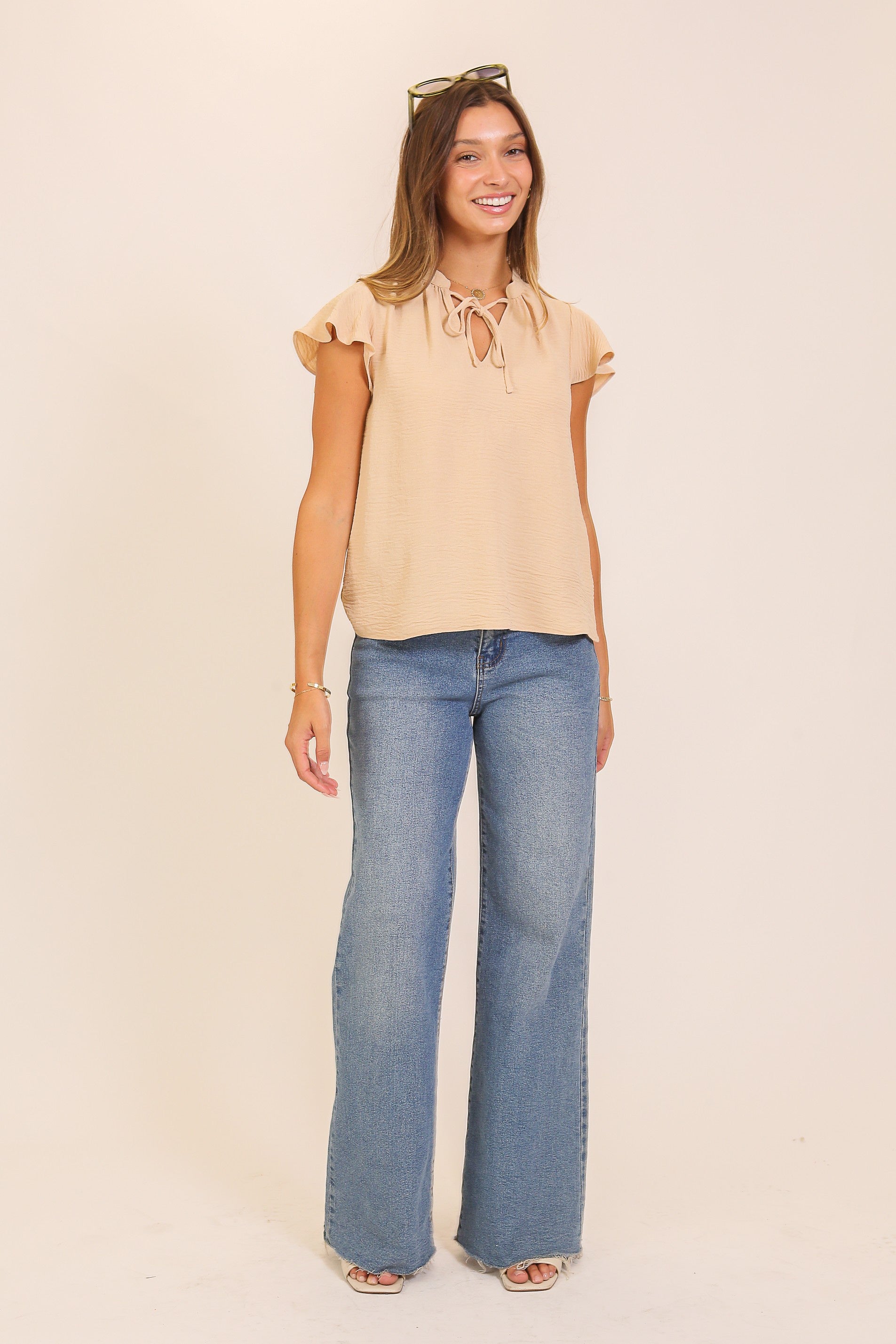 WN9841R | WOMENS FRONT TIE BEIGE BLOUSE